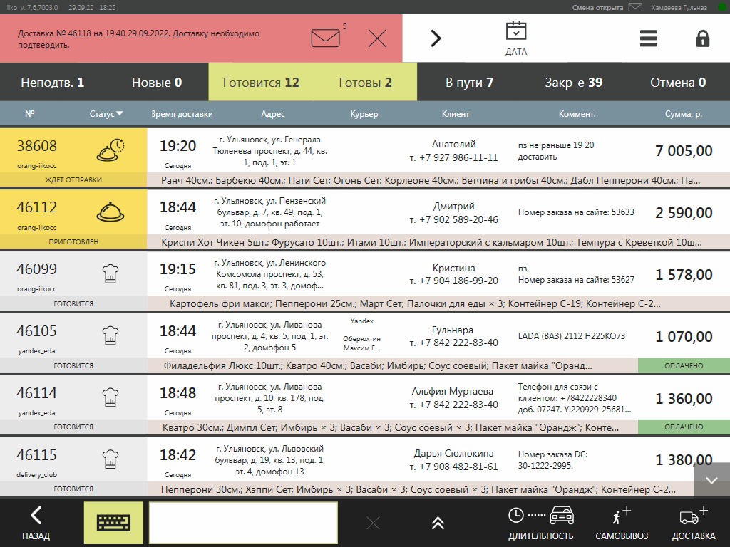 После этого произойдет закрытие доставки и автоматический переход в список доставок.